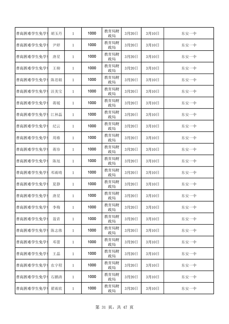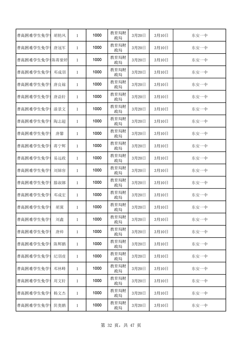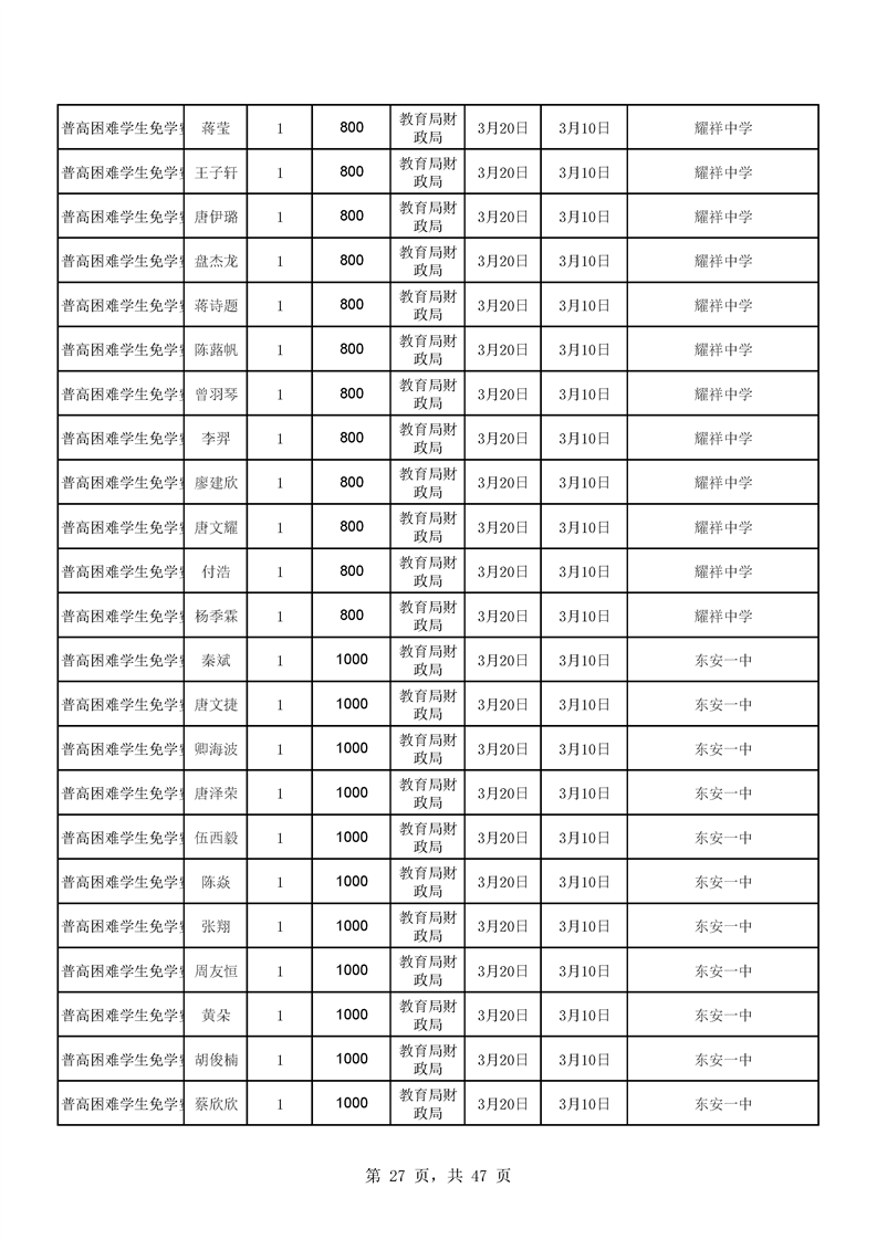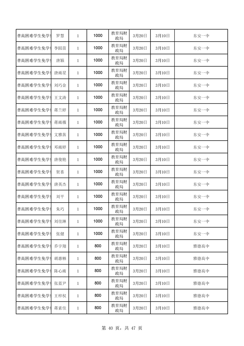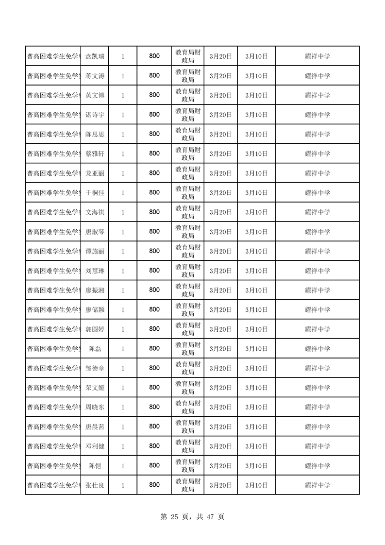 ray雷竞技官网入口2025年春季普通高中学校困难学生免学费公示表