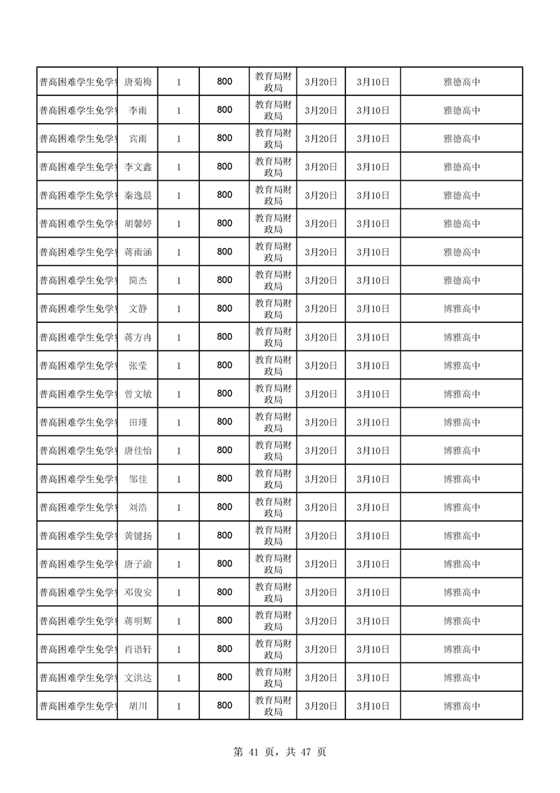 名称: ray雷竞技官网入口2025年春季普通高中学校困难学生免学费公示表