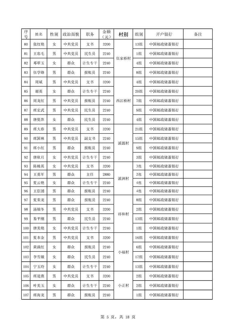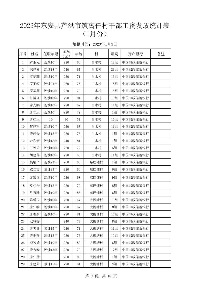 名称: 芦洪市镇2023年1月份村干部工资公示