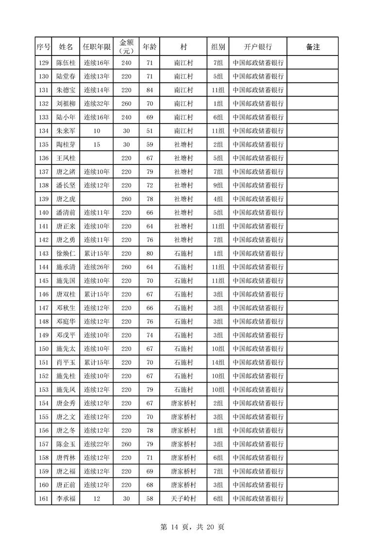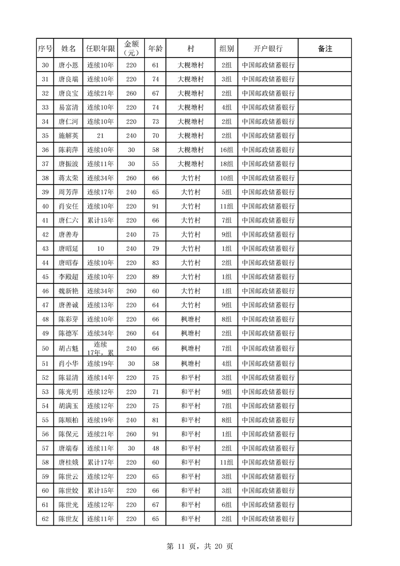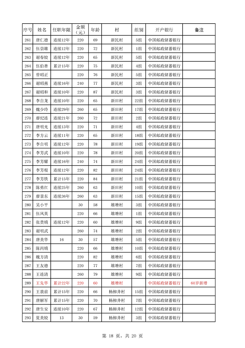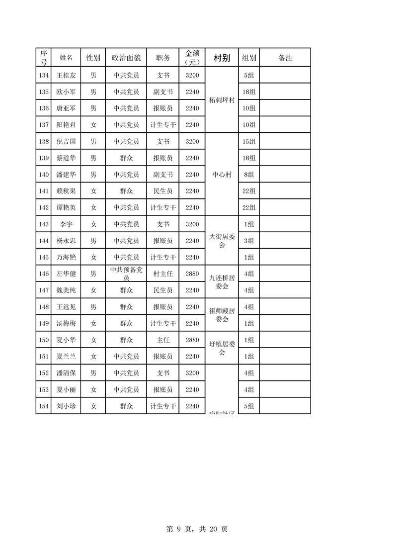 芦洪市镇2023年7月份村干部工资公示