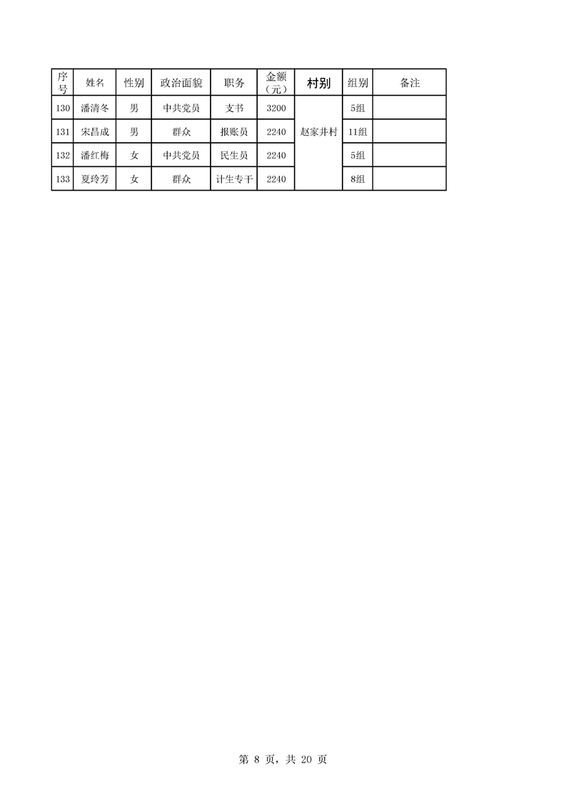 名称: 芦洪市镇2023年7月份村干部工资公示