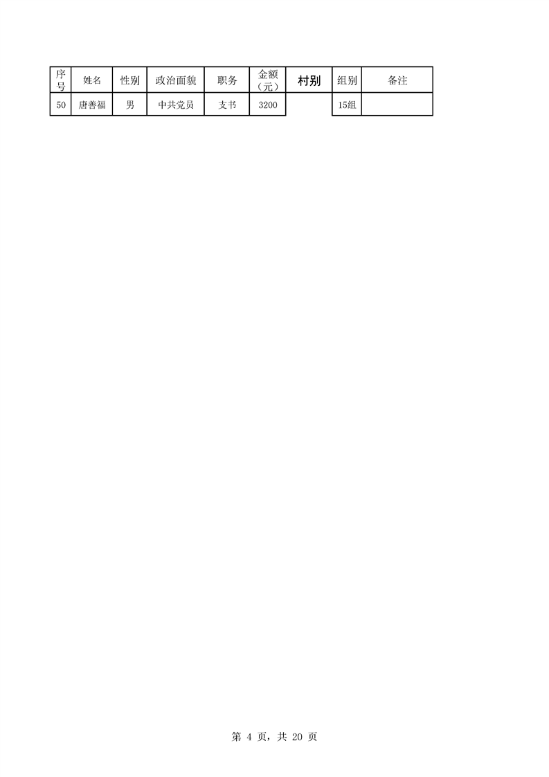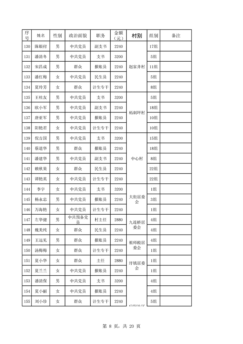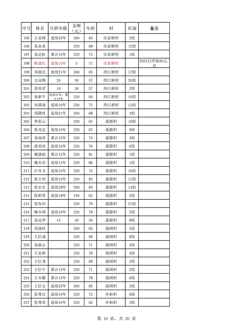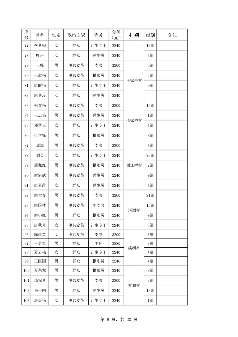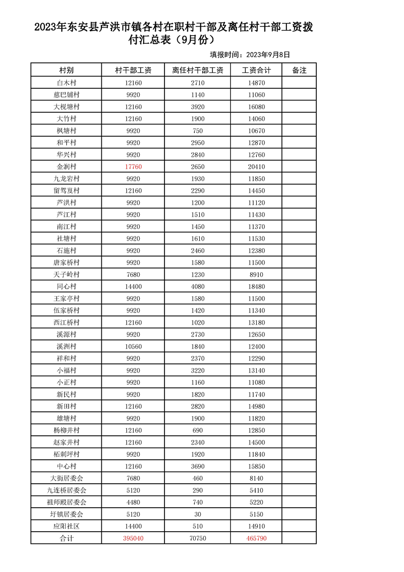 芦洪市镇2023年9月份村干部工资公示