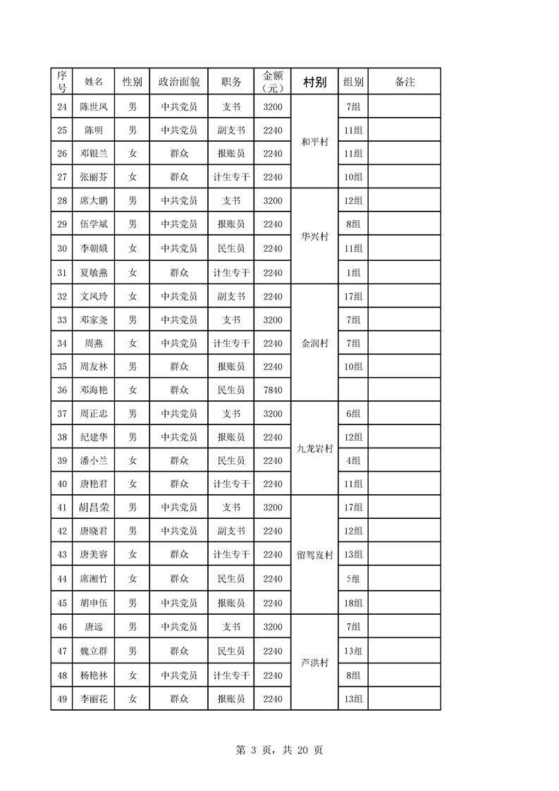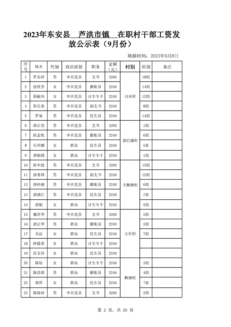 名称: 芦洪市镇2023年9月份村干部工资公示