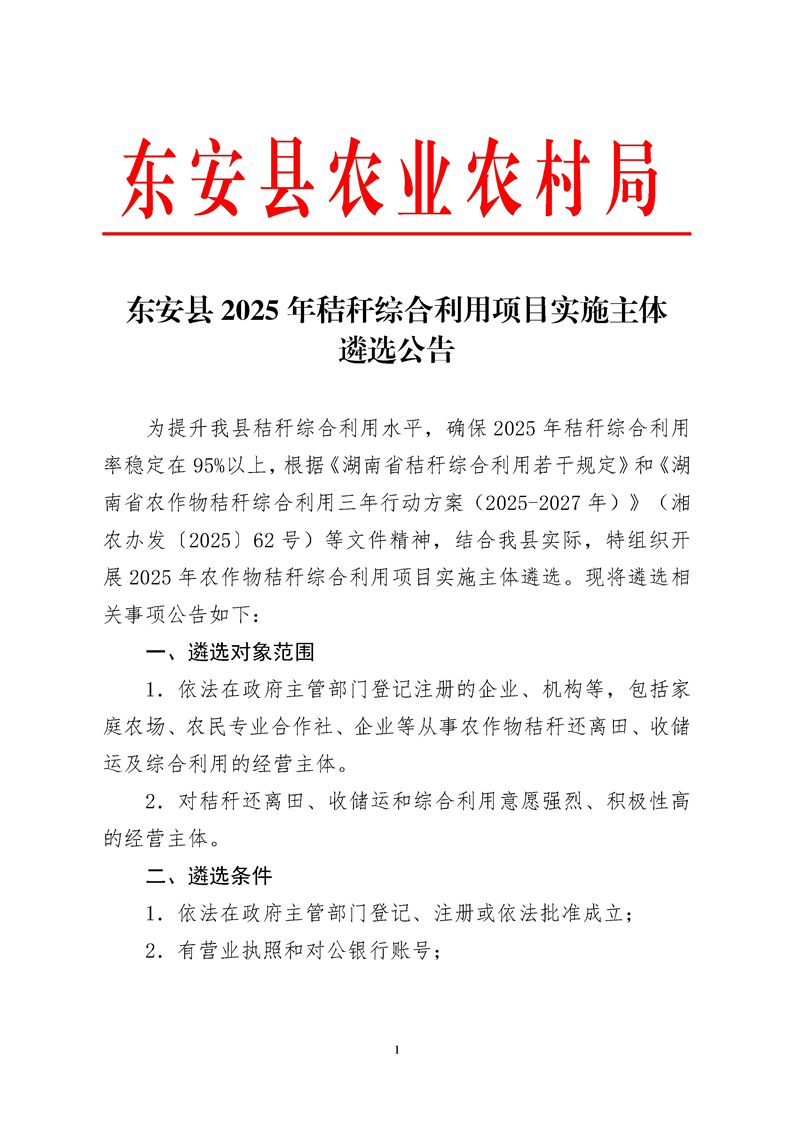ray雷竞技官网入口2025年秸秆综合利用项目实施主体遴选公告