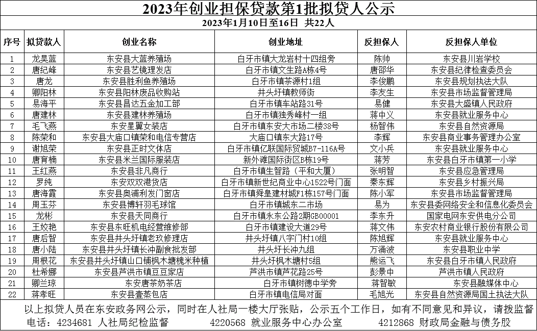 名称: 2023年创业担保贷款第1批拟贷人公示