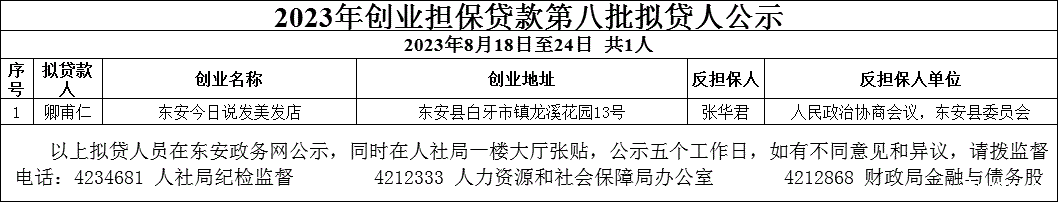 2023年创业担保贷款第八批拟贷人公示
