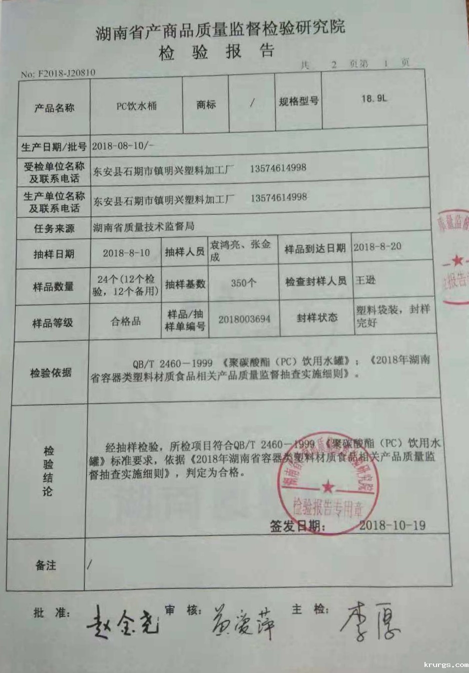 ray雷竞技官网入口石期市镇明兴塑料加工厂检验报告单