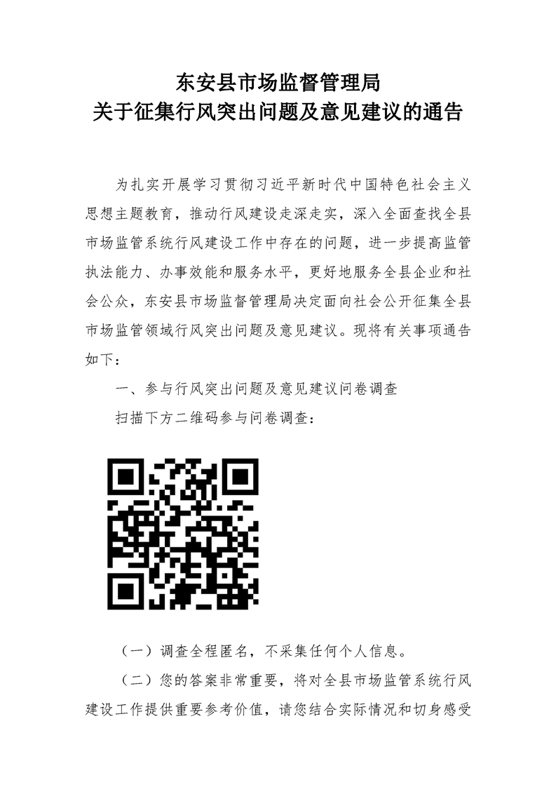ray雷竞技官网入口市场监督管理局 关于征集行风突出问题及意见建议的通告