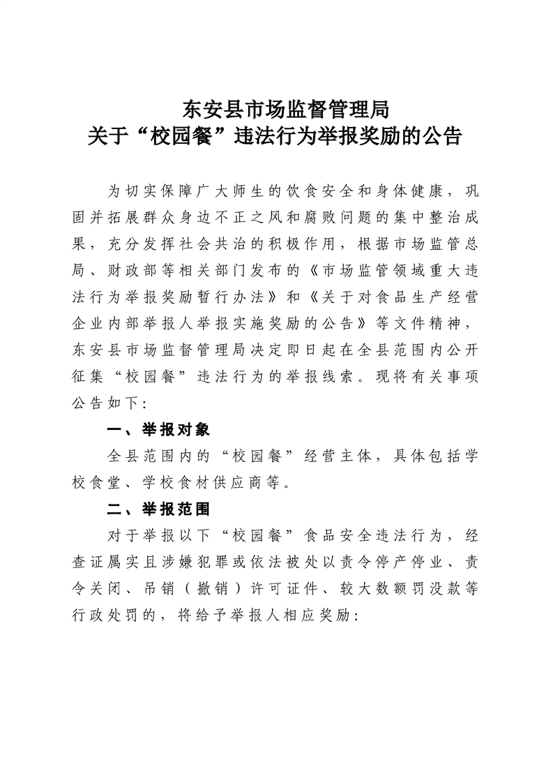 ray雷竞技官网入口市场监督管理局关于“校园餐”违法行为举报奖励的公告