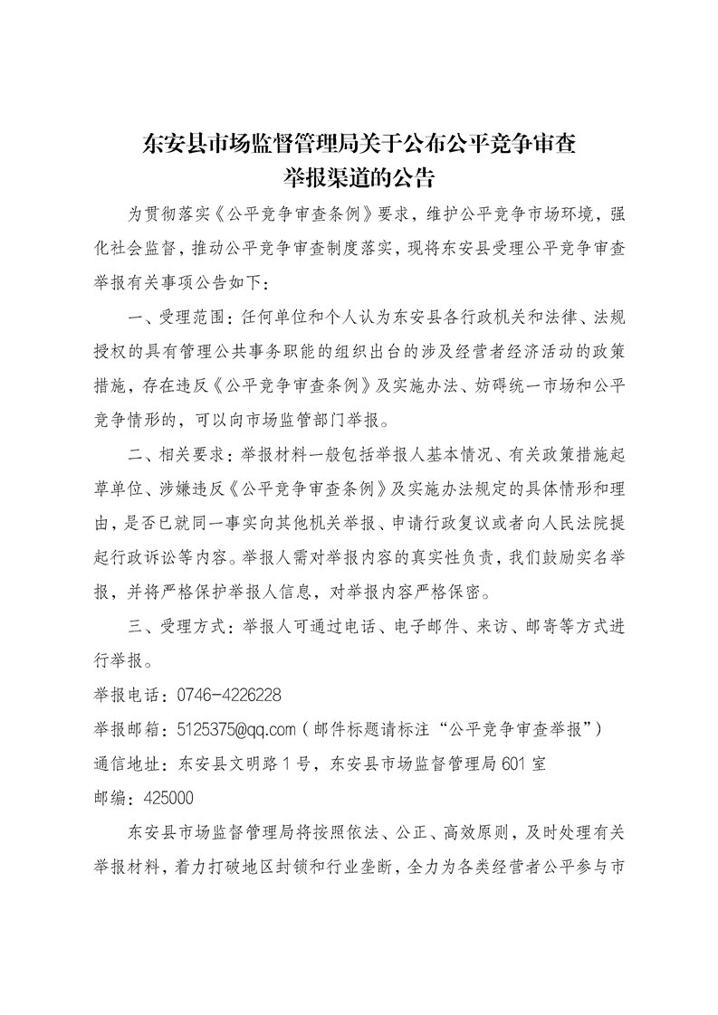 ray雷竞技官网入口市场监督管理局关于公布公平竞争审查举报渠道的公告