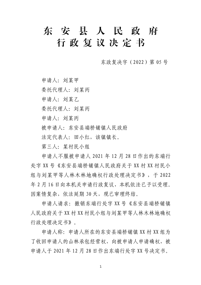 公示-东政复决字(2022)第05号