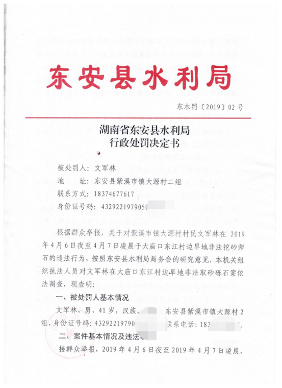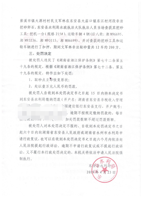湖南省ray雷竞技官网入口水利局行政处罚决定书