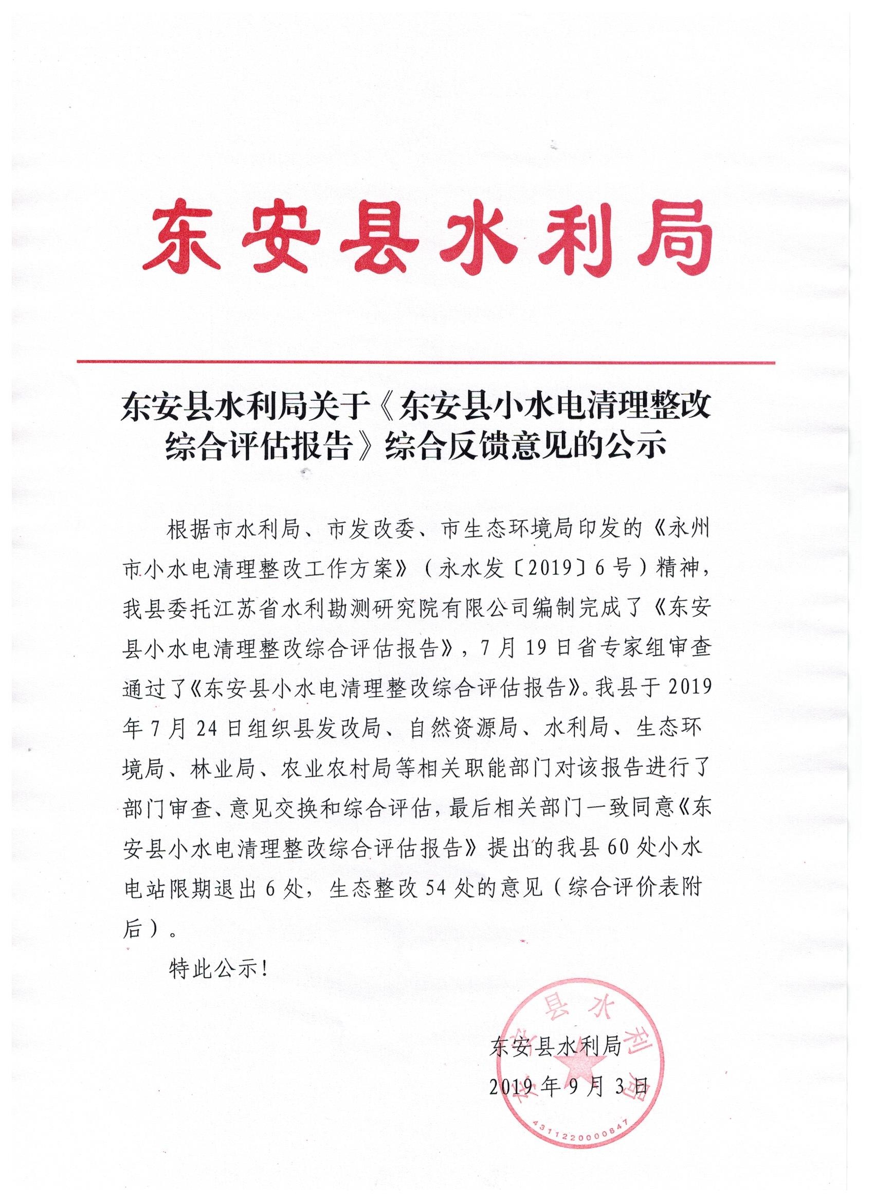 ray雷竞技官网入口水利局关于《ray雷竞技官网入口小水电清理整改综合评估报告》综合反馈意见的公示