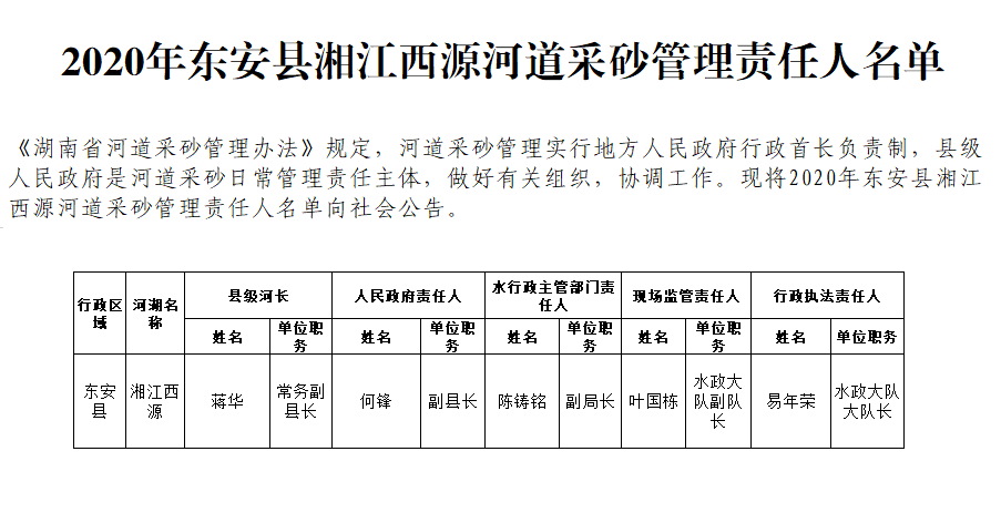 ray雷竞技官网入口重点河段、敏感水域河道采砂管理责任人表