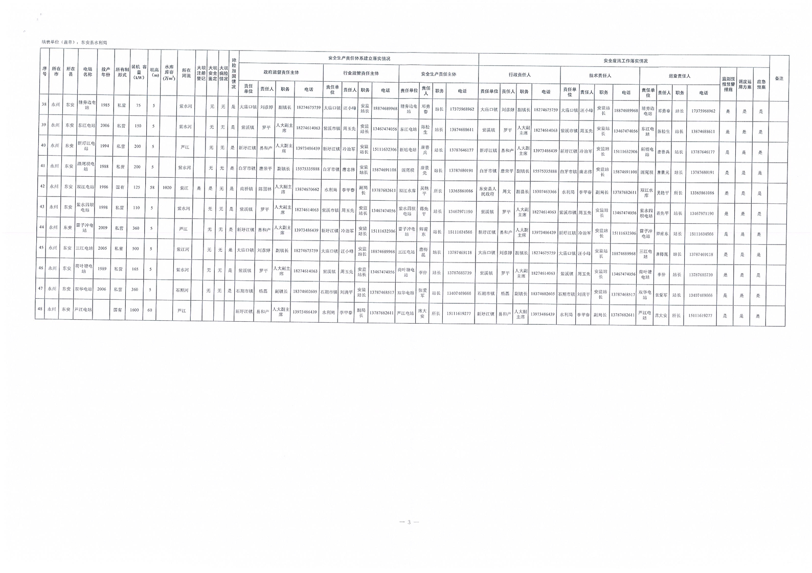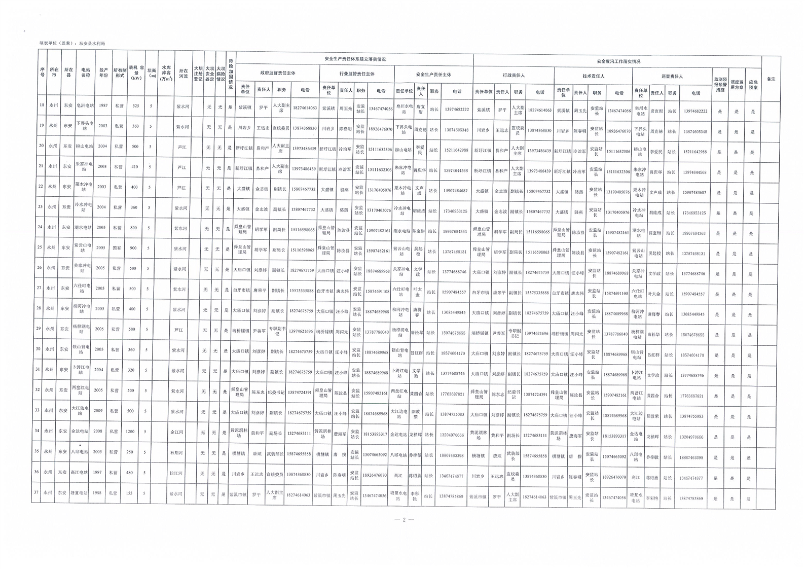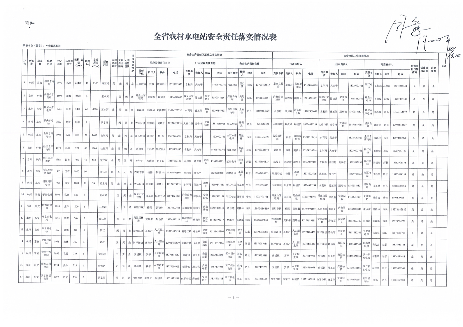 2022年全省农村水电站安全责任落实情况表(东安)
