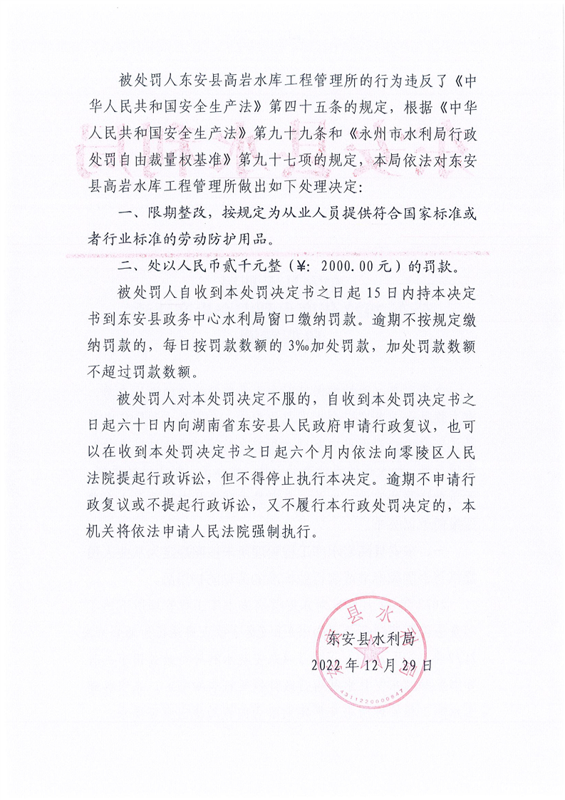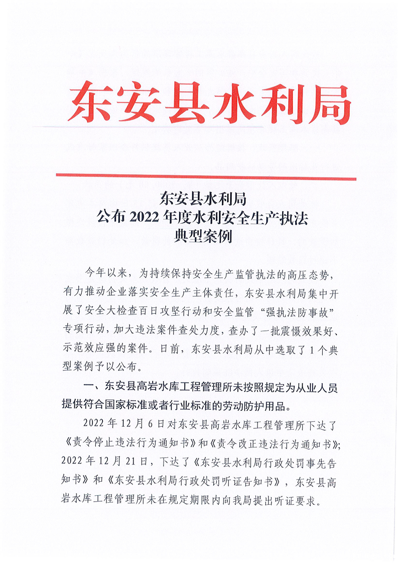 ray雷竞技官网入口水利局公布2022年度水利安全生产执法典型案例(第四季度)