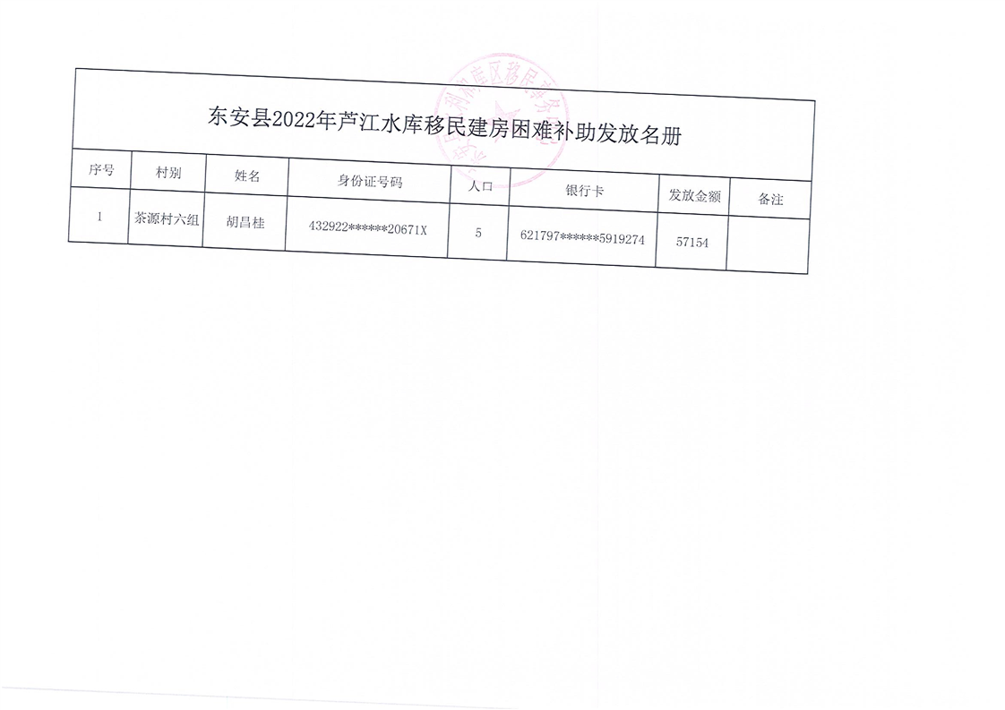 ray雷竞技官网入口2022年芦江水库移民建房困难补助发放名册