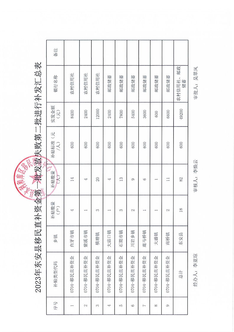 名称: 2023年ray雷竞技官网入口移民直补资金第一批发放失败第二批进行补发花名册及汇总表