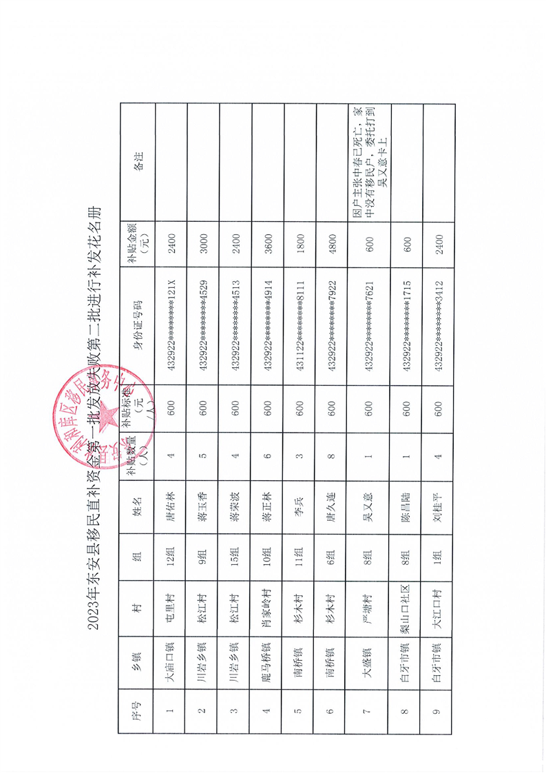 2023年ray雷竞技官网入口移民直补资金第一批发放失败第二批进行补发花名册及汇总表