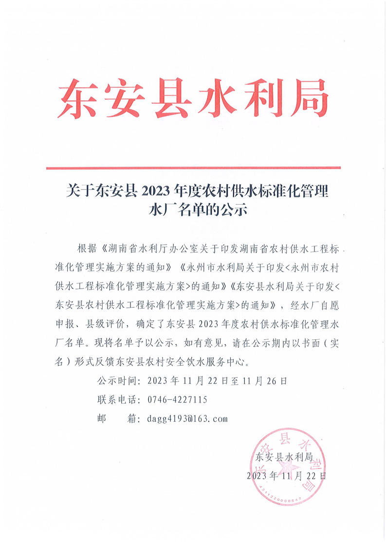 名称: ray雷竞技官网入口2023年度农村供水标准化管理水厂名单公示