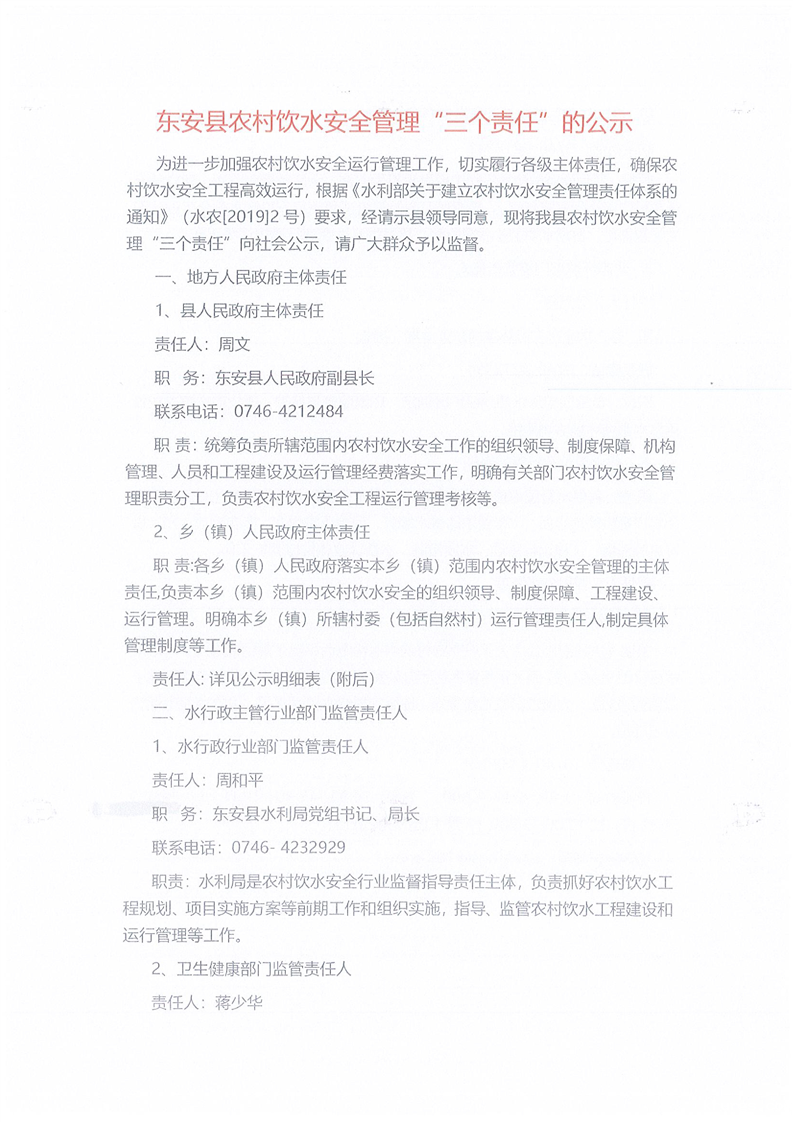 ray雷竞技官网入口农村饮水安全管理“三个责任”的公示