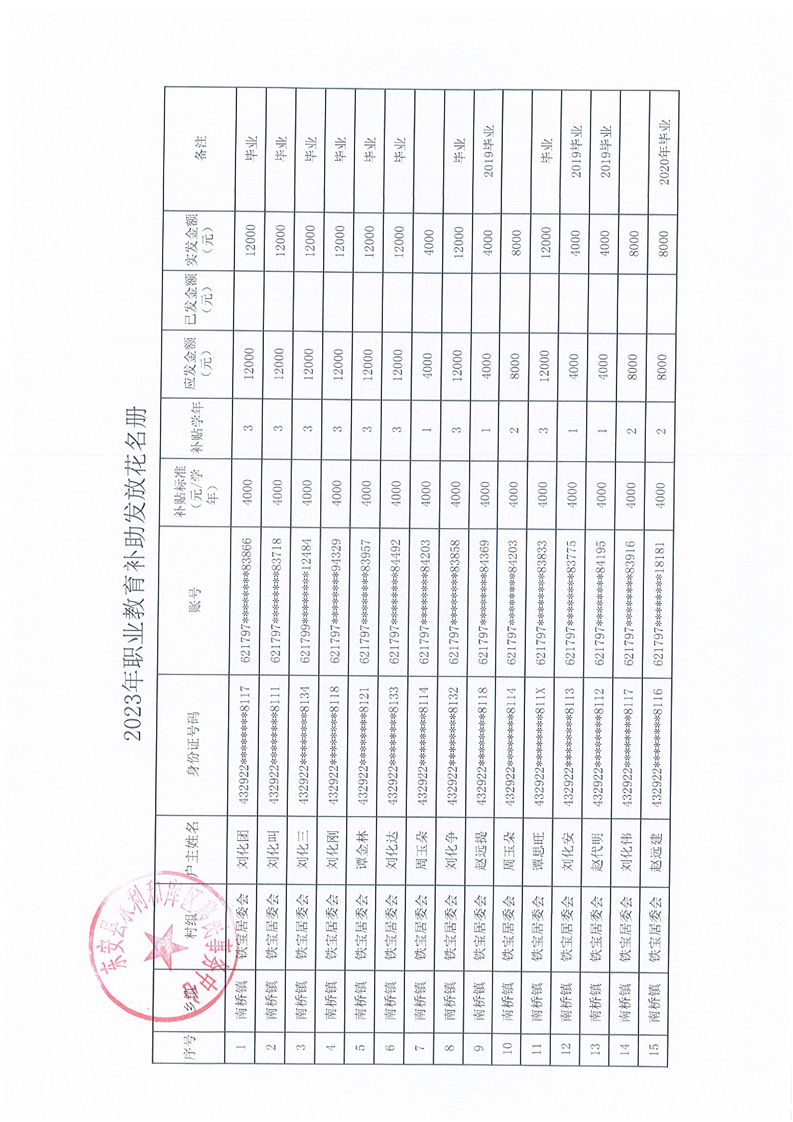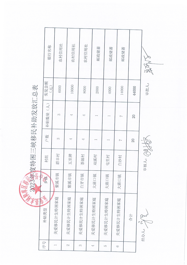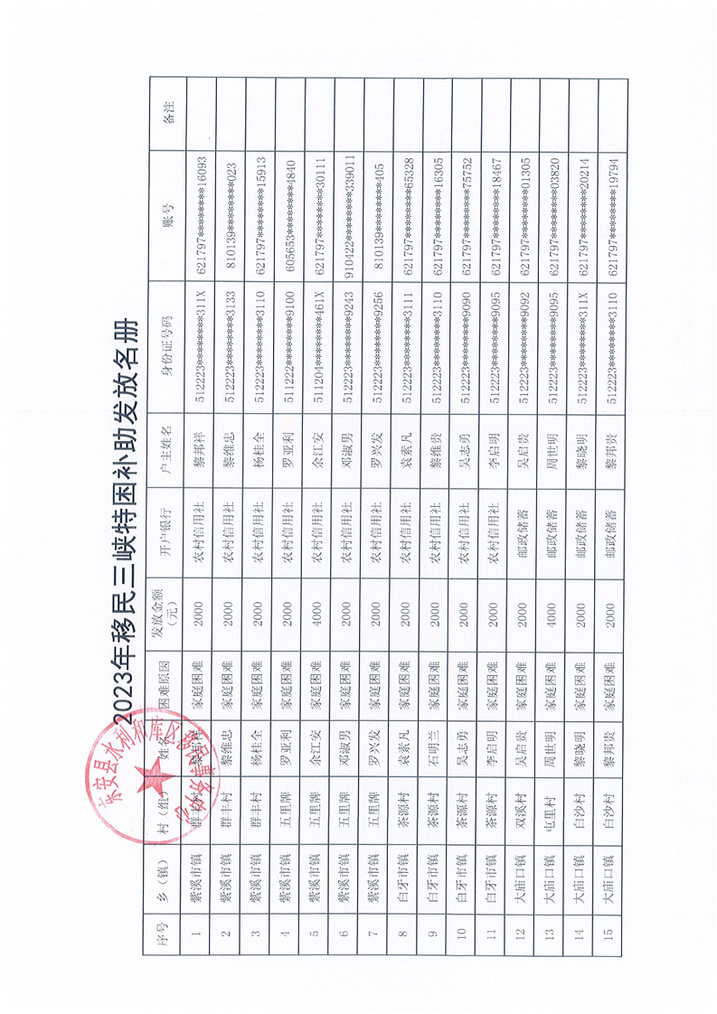 2023年职业教育补助发放花名册、2023年度移民大病补助发放花名册、2023年移民三峡特困补助发放名册
