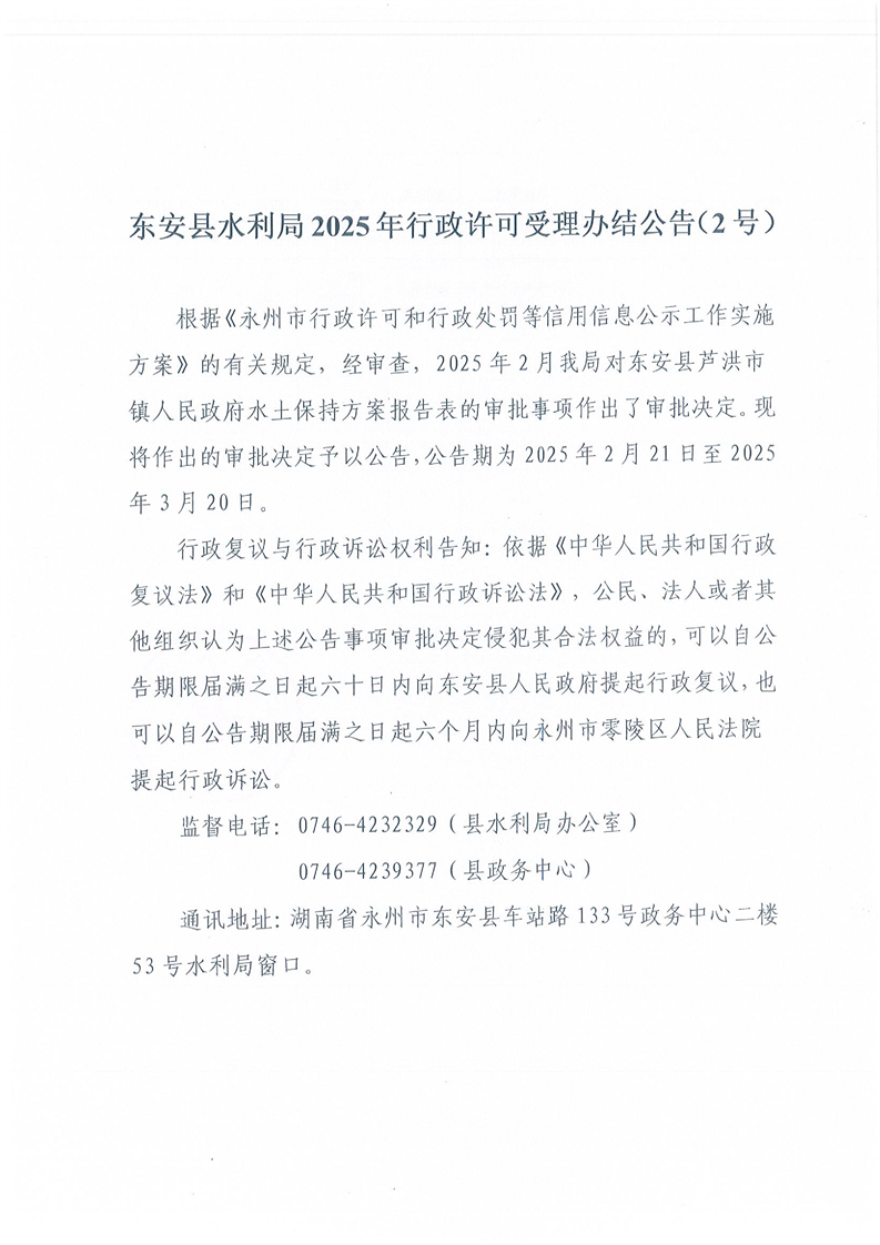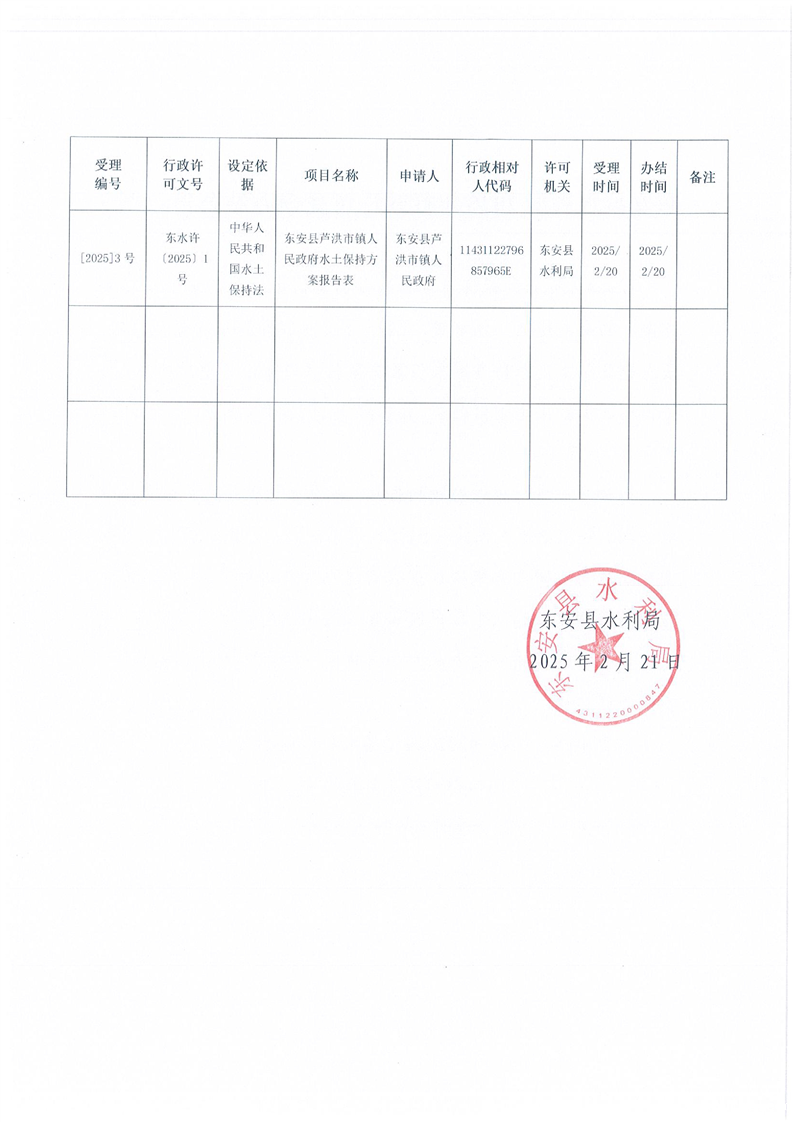 ray雷竞技官网入口水利局2025年行政许可受理办结公告(2号)