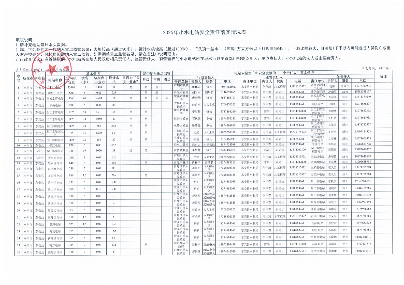 2025年永州市ray雷竞技官网入口小水电站安全责任落实情况表