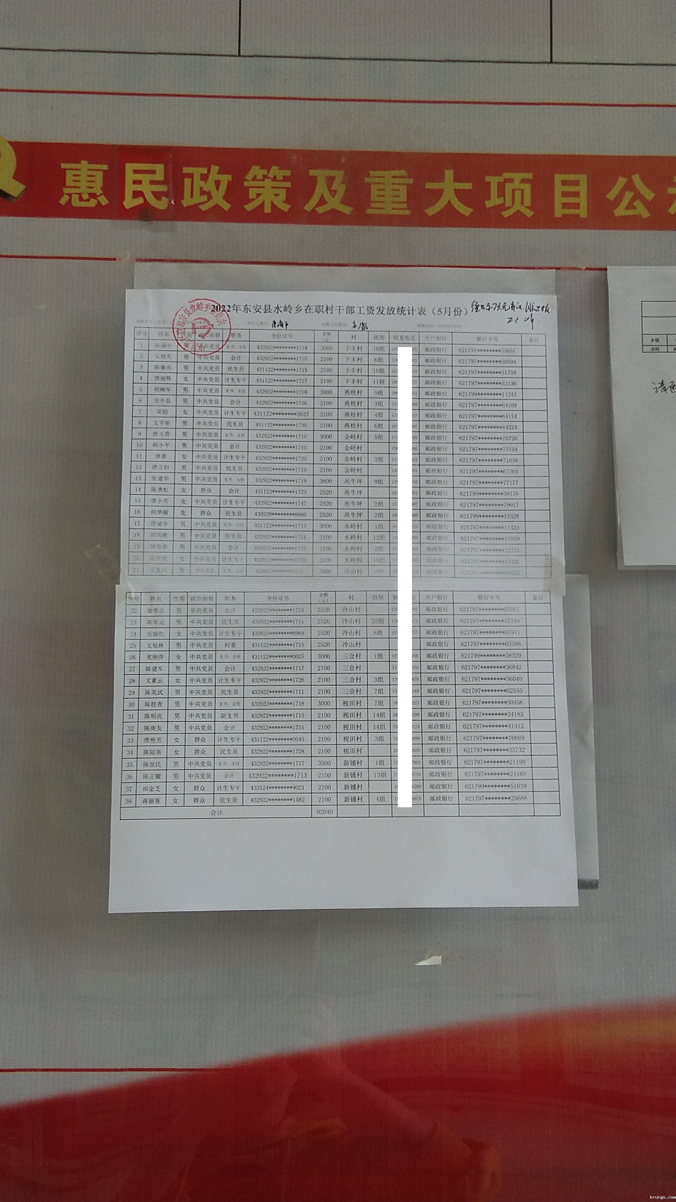 水岭乡5月份村干部工资(在职)