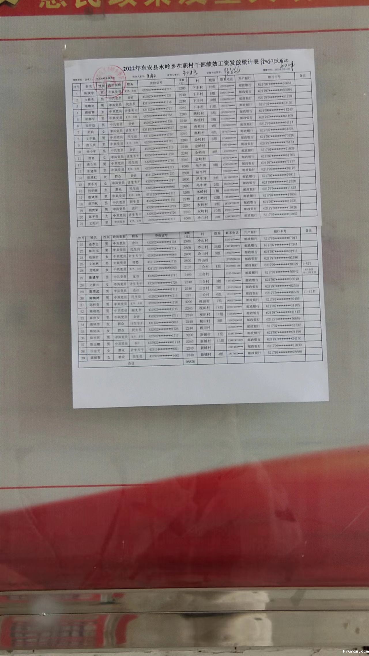 2022年ray雷竞技官网入口水岭乡在职村干部绩效工资发放统计表