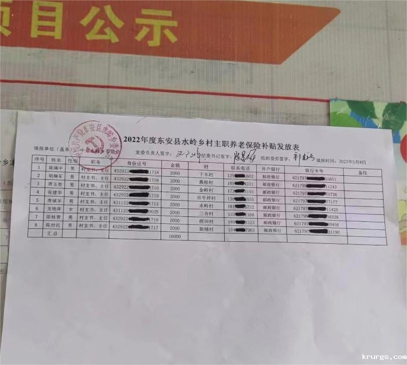 2022年度ray雷竞技官网入口水岭乡村主职养老保险补贴发放表