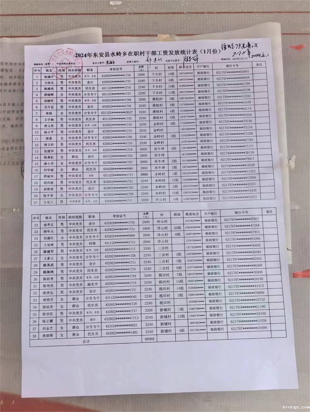 2024年ray雷竞技官网入口水岭乡在职村于部工资发放统计表 (1月份)