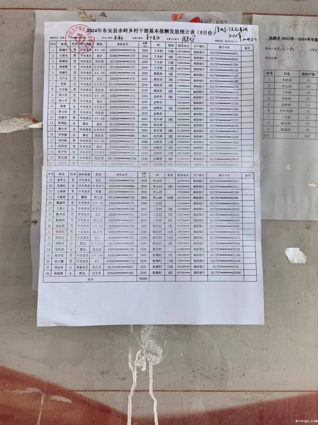 2024年ray雷竞技官网入口水岭乡村干部基本报酬发放统计表(5月份)