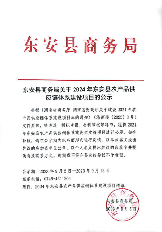 东安鸡系列产品加工、冷链运输项目 |