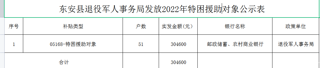 ray雷竞技官网入口退役军人事务局发放2022年特困援助对象公示表