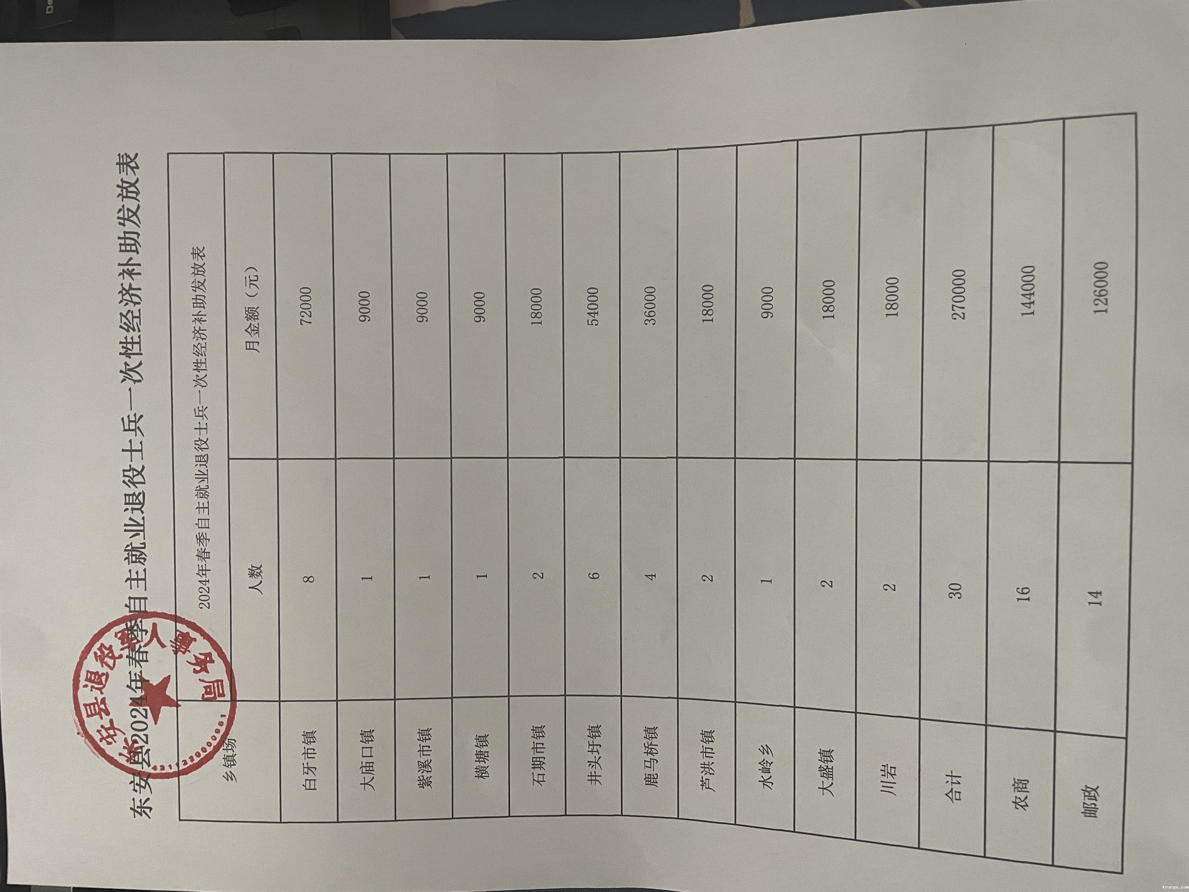 名称: ray雷竞技官网入口2024年春季自主就业退役士兵一次性经济补助发放表
