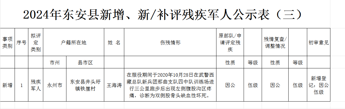 2024年ray雷竞技官网入口新增、新/补评残疾军人公示表(三)