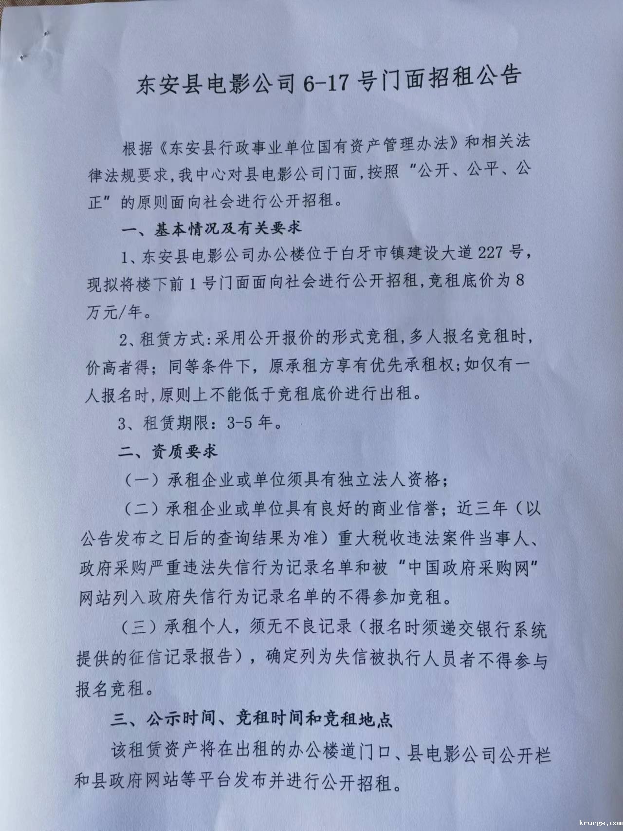 ray雷竞技官网入口电影公司6-17号门面招租公告