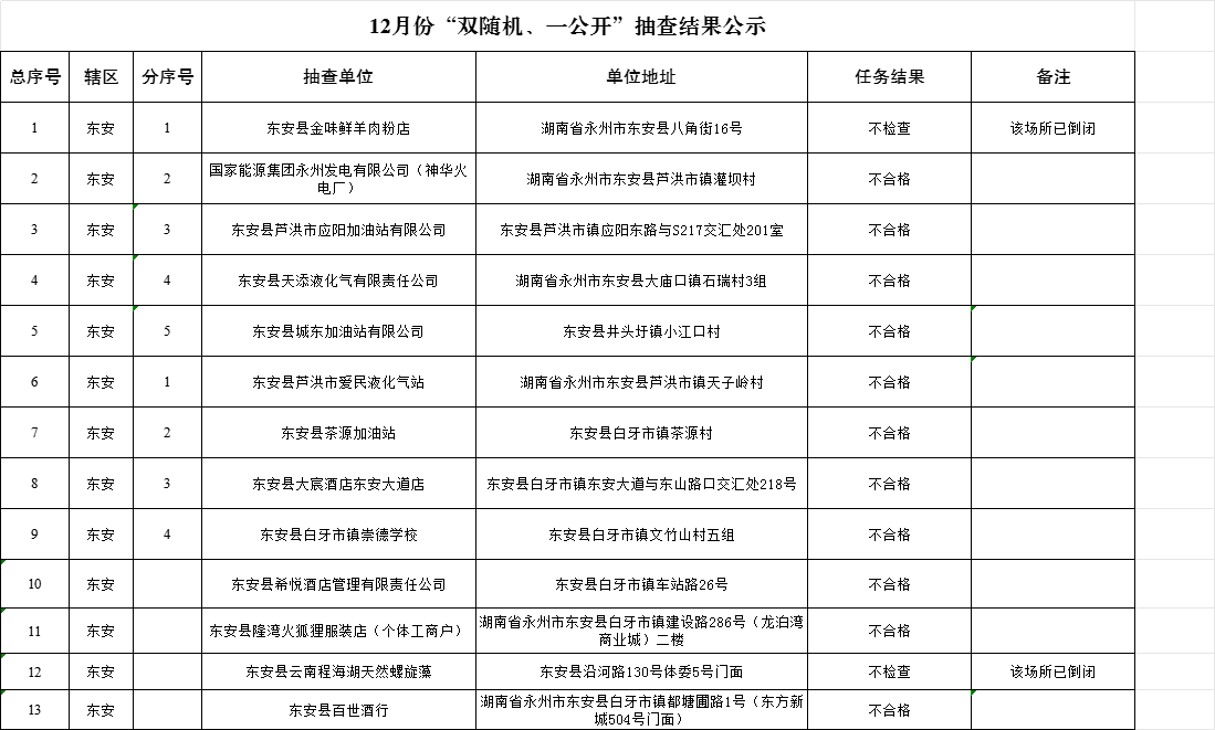 名称: 2024年12月份“双随机、一公开”抽查结果公示