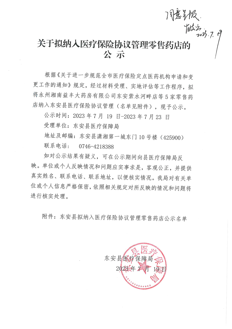 名称: 关于拟纳入医疗保险协议管理零售药店的公示