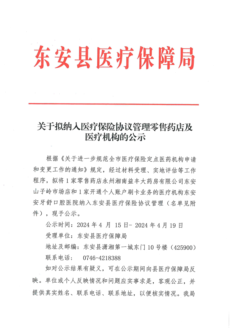 关于拟纳入医疗保险协议管理零售药店及医疗机构的公示
