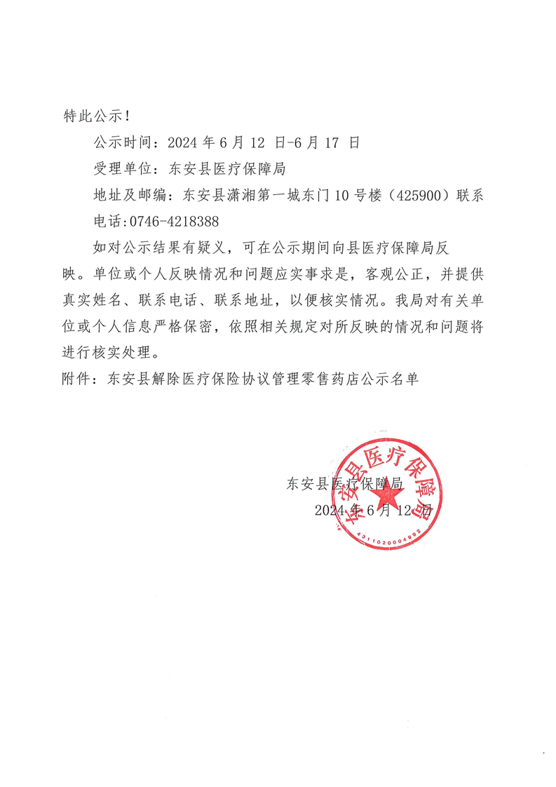 名称: 关于定点零售药店解除医保定点协议管理的公示