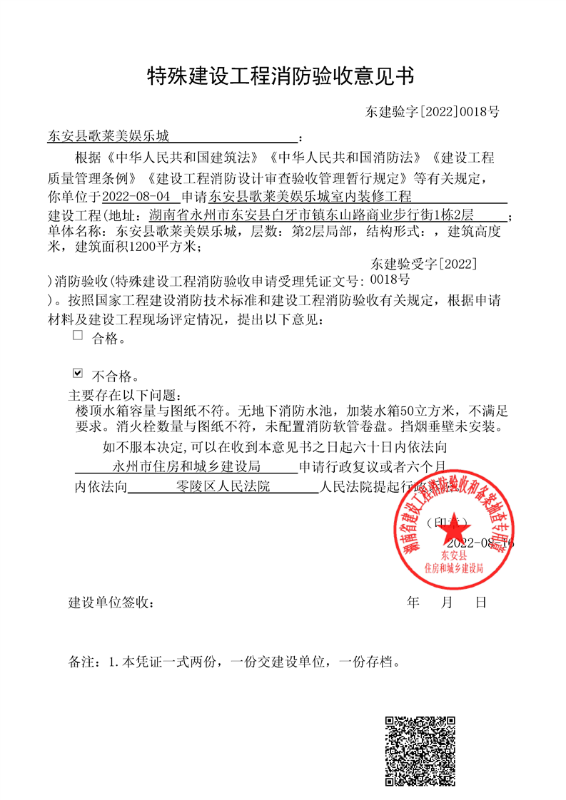 ray雷竞技官网入口歌莱美娱乐城室内装修工程消防验收结果公示