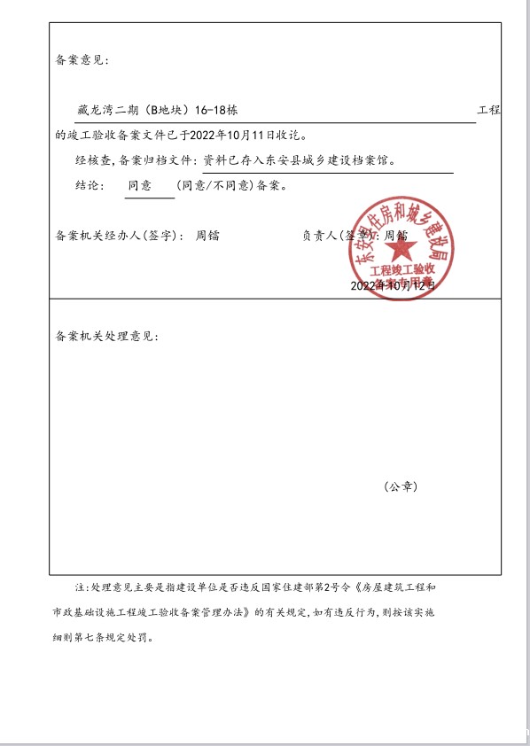 名称: 藏龙湾二期(B地块)16-18栋竣工验收备案表