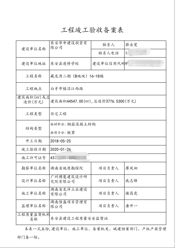 藏龙湾二期(B地块)16-18栋竣工验收备案表