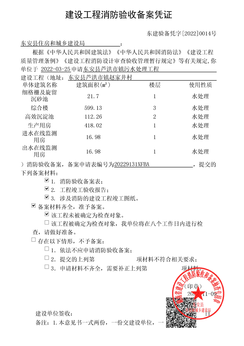 ray雷竞技官网入口芦洪市镇污水处理工程消防验收备案结果公示