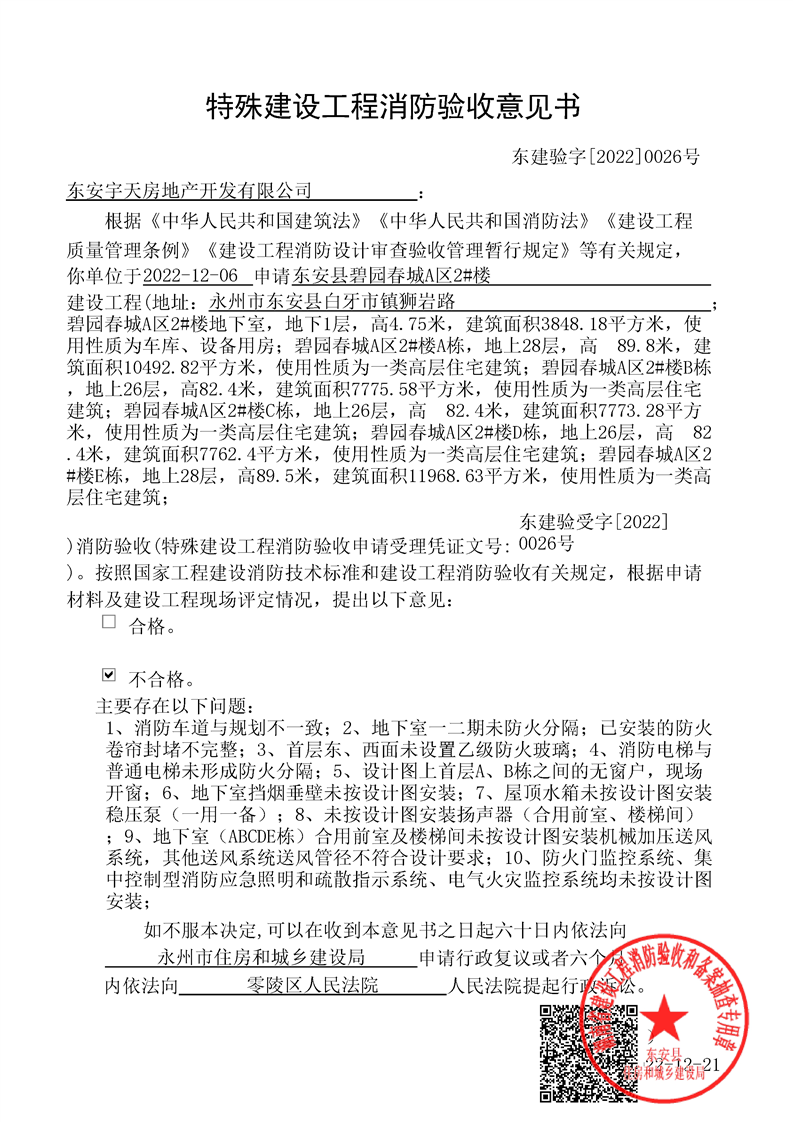 ray雷竞技官网入口碧园春城A区2#楼消防验收意见公示