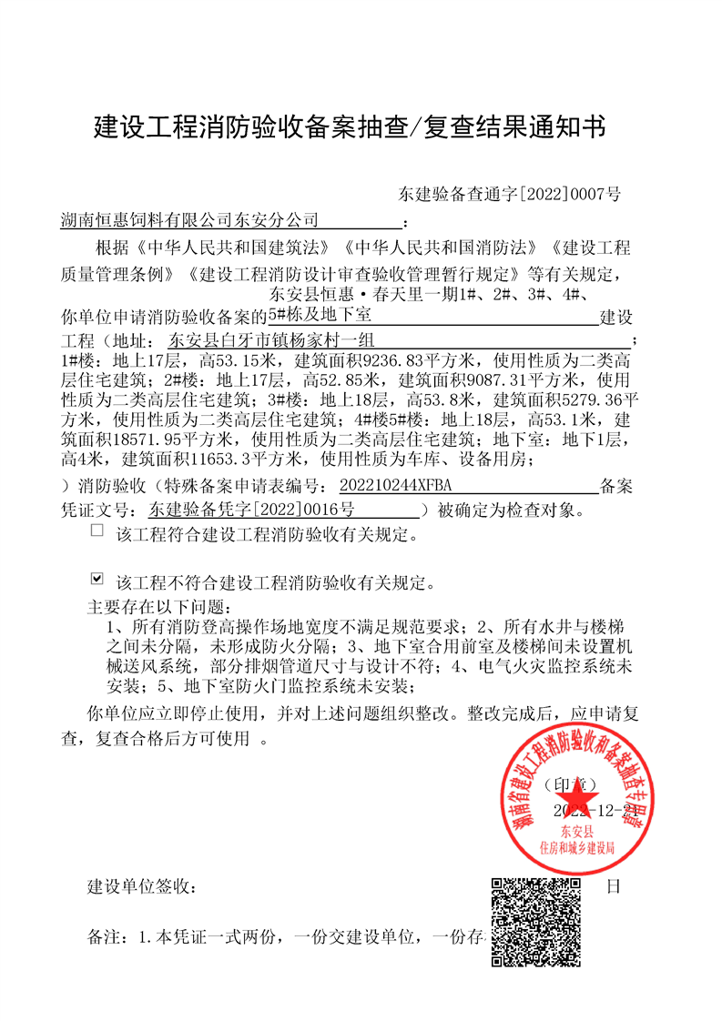 ray雷竞技官网入口恒惠·春天里一期1#、2#、3#、4#、5#栋及地下室消防验收备案结果公示