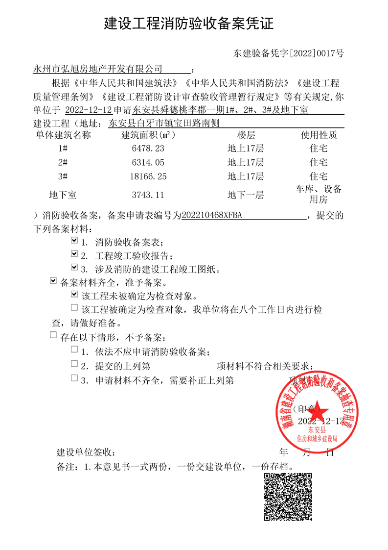 ray雷竞技官网入口恒惠·春天里一期1#、2#、3#、4#、5#栋及地下室消防验收备案结果公示