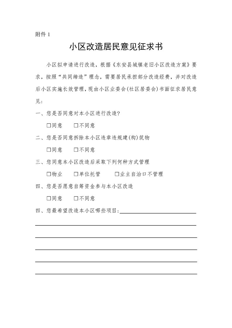附件1:《小区改造项目居民意见征求书》